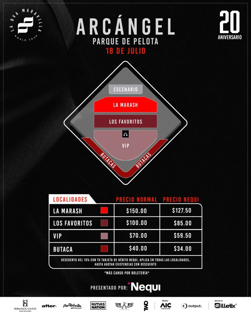 Arcángel + Añadir Google Calendar Exportación + iCal / Outlook 00 días 00 horas 00 minutos 00 segundos Fecha Jul 18 2026 Hora 8:30 pm - 11:55 pm Más Información Comprar Localización Parque Nacional de Pelota Saturnino Bengoa MQQ9+45R Las Mercedes, El Salvador Web https://indes.gob.sv/ Teléfono 22984112 Categoría Conciertos Organizador AiC Promotions Web http://aicpromotions.com Comprar Compartir este evento Buscar: Archivos Categorías No hay categorías