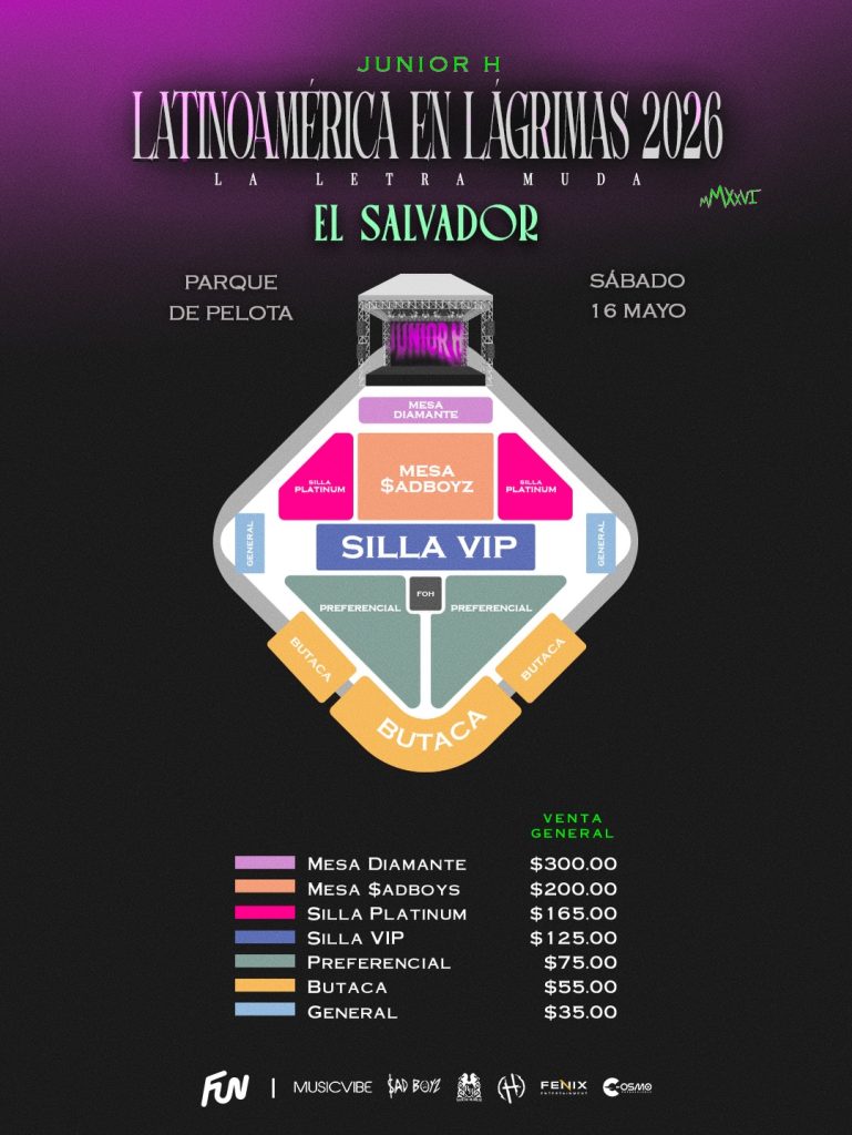 Junior H + Añadir Google Calendar Exportación + iCal / Outlook 00 días 00 horas 00 minutos 00 segundos Fecha May 16 2026 Hora 8:30 pm - 11:55 pm Más Información Comprar Localización Parque Nacional de Pelota Saturnino Bengoa MQQ9+45R Las Mercedes, El Salvador Web https://indes.gob.sv/ Teléfono 22984112 Categoría Conciertos Organizador Cosmo Latam Comprar Compartir este evento Buscar: Archivos Categorías No hay categorías