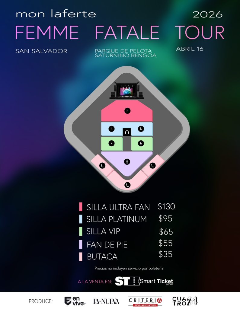 Mon laferte + Añadir Google Calendar Exportación + iCal / Outlook Fecha Abr 16 2026 Finalizdo! Hora 8:30 pm - 11:55 pm Más Información Comprar Localización Parque Nacional de Pelota Saturnino Bengoa MQQ9+45R Las Mercedes, El Salvador Web https://indes.gob.sv/ Teléfono 22984112 Categoría Conciertos Organizador En Vivo Producciones Compartir este evento Buscar: Archivos Categorías No hay categorías
